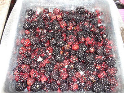 I went to my local home improvement store a few years ago and they had blackberry plants for 2.00 so I grabbed about 15 of them and planted them in my garden spot. They grew and grew and before I knew it they were making runners all over the yard. I gave some to my dad and left brain has been running over them with the lawn mower. I want to share a blackberry cobbler recipe I made with them the other day .