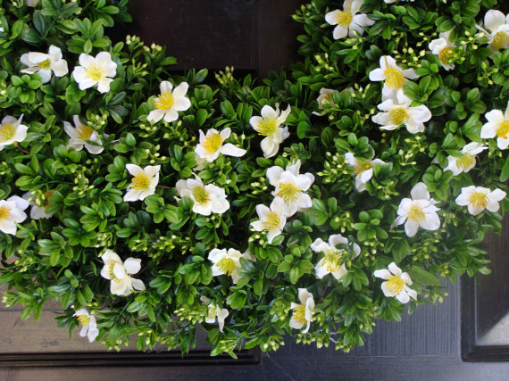 I just love those boxwood wreaths and their simple beauty. You think that you can just decorate them with pretty bows and place them so perfectly on your front door changing the color year round. Boxwood makes great wreaths since their needles do not fall to the floor .